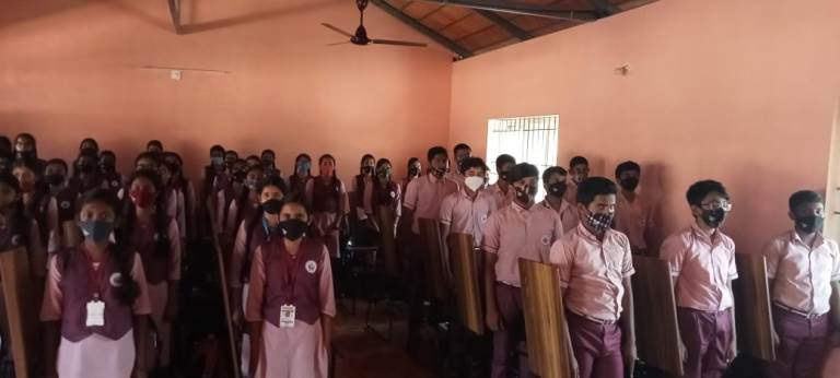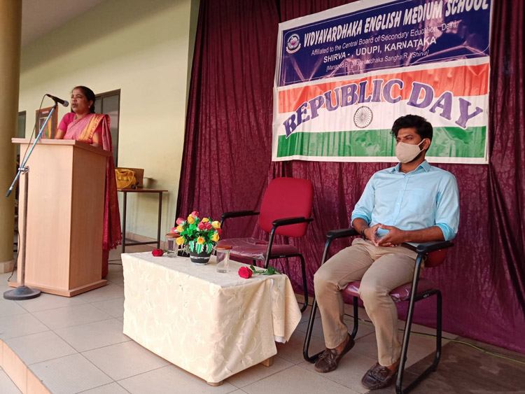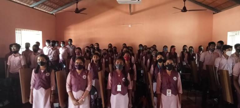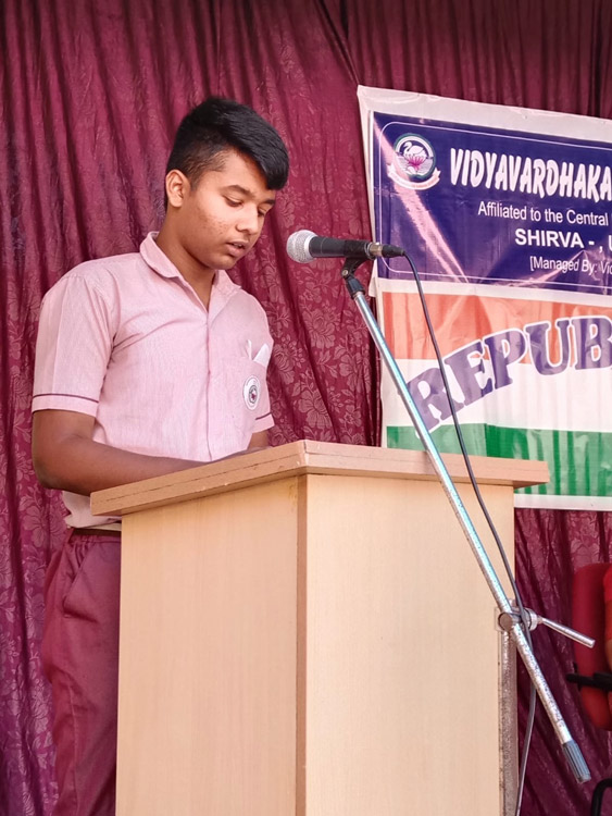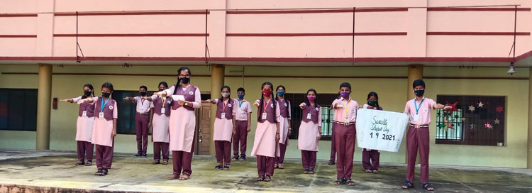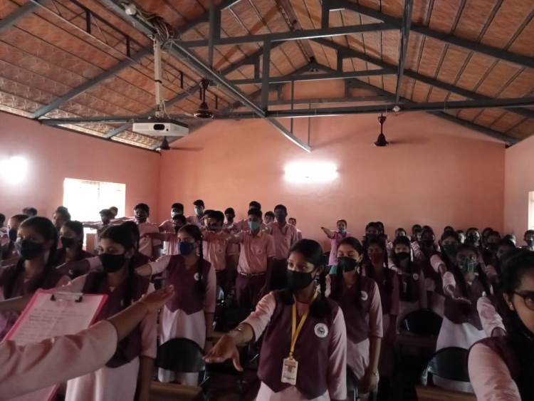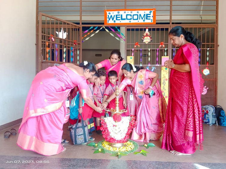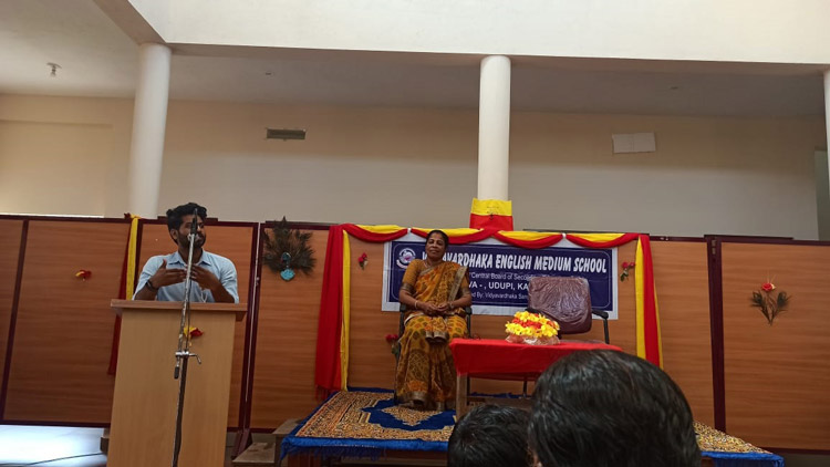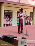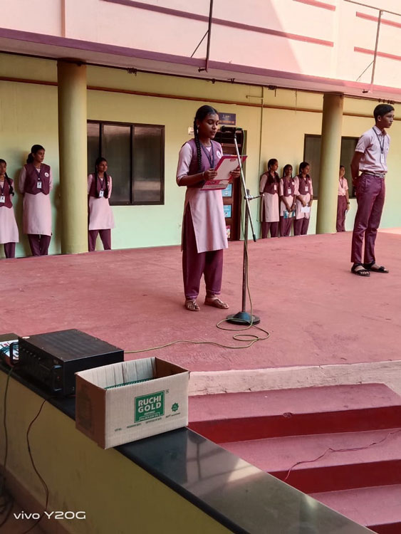 •To start the day our Principal, Dr. Sahana Hegde addressed the school by her kind words encouraging kids to avoid use of plastic to save our environment.